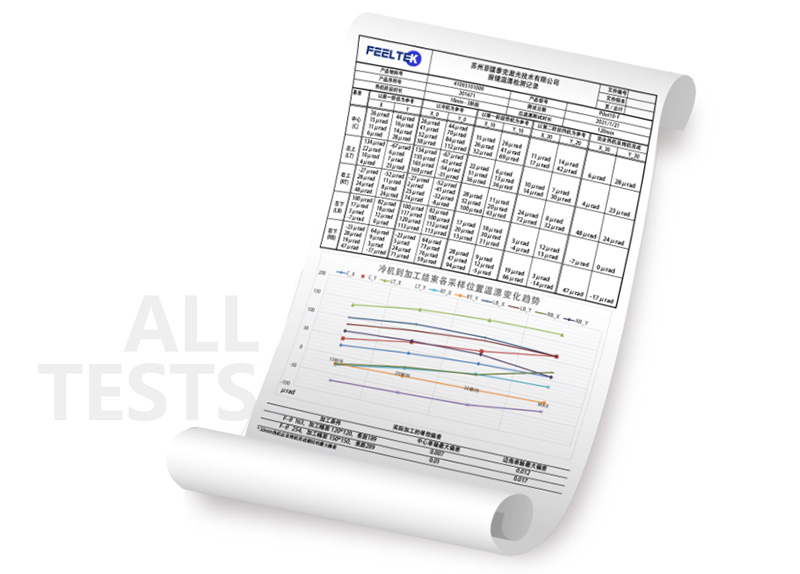 通过高精度位置传感器校准平台,菲镭泰克可以看到动态轴的线性度、分辨率和温度漂移数据结果。质量有保障。